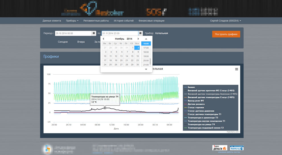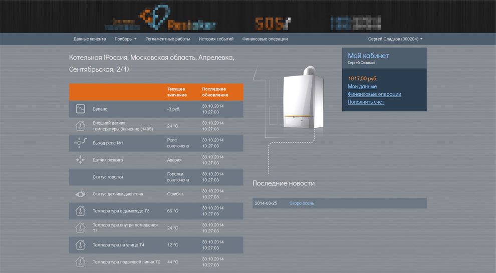 http://cpp-d.ruSaaS-система предназначена для мониторинга, оповещения, управления датчиками отопительного оборудования. С её помощью, клиенты могут в режиме реального времени удаленно наблюдать за состоянием своего отопительного оборудования. Система позволяет организовать иерархическое дерево клиентов и обслуживающих организаций, которые могут перепродавать услуги и сами контроллировать показания приборов своих клиентов. Оповещение происходит по e-mail и SMS