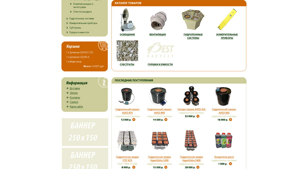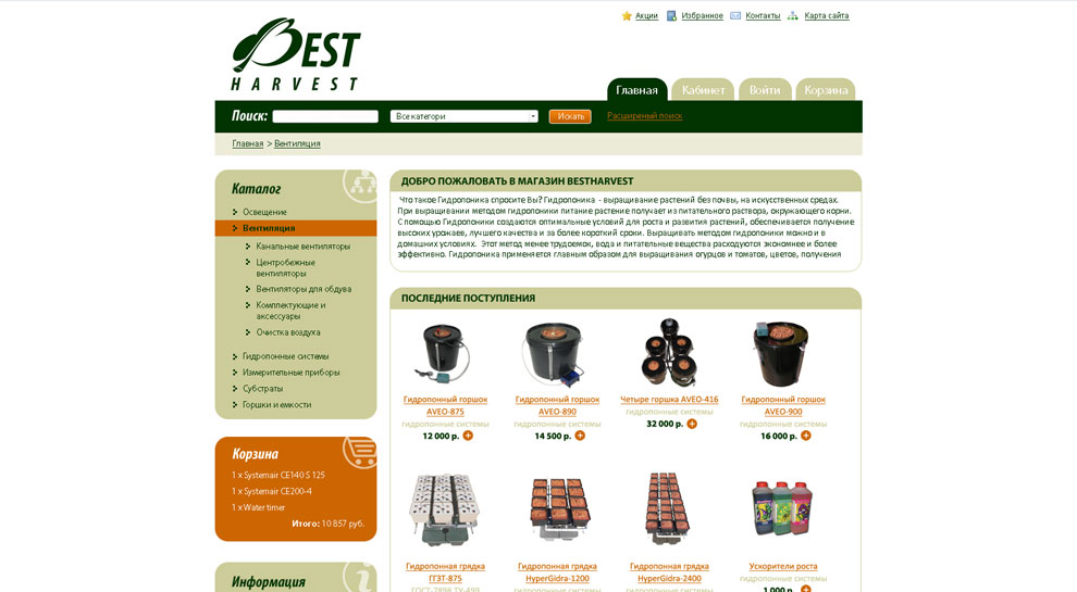 http://supply-of.ru/Интернет-магазин оборудования для домашнего растениеводства. Система предоставляет полный цикл для организации интернет-торговли: размещение и редактирование товара и товарных групп, актуализация количества, автоматическая регистрация клиентов, управление корзиной, оплата товара, выбор способа доставки, оповещение по e-mail