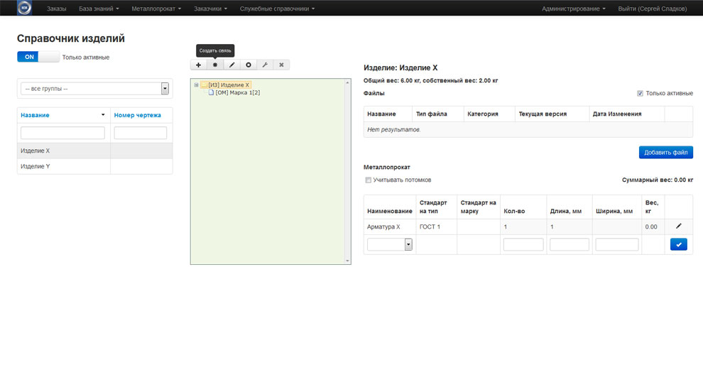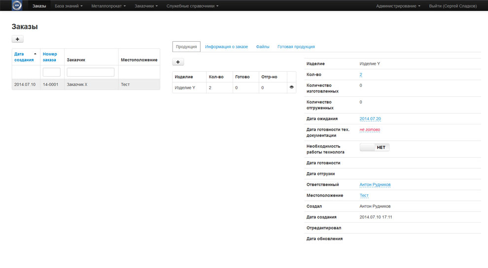 Система позволяет вести проекты по созданию металоконструкций с нуля до момента отгрузки готового изделия. Система построена на основе иерархических справочников конечных изделий, которые включаются в проект по мере необходимости, также есть возможность загружать и привязывать к проектам чертежи, вести клиентскую базу, управлять уровнями доступа на основе ролей и привилегий к тем или иным разделам системы